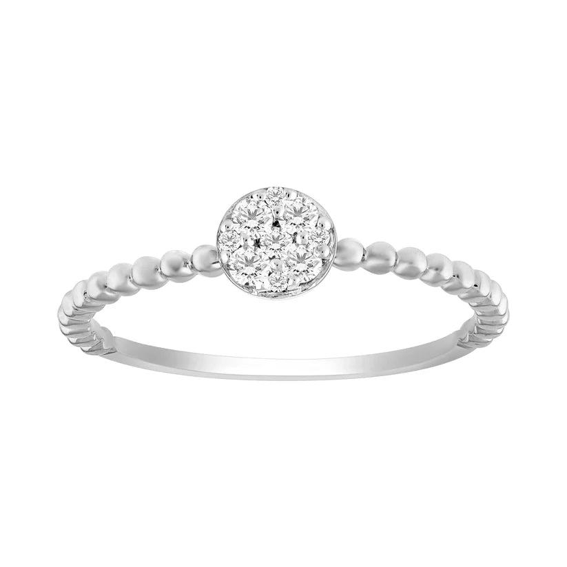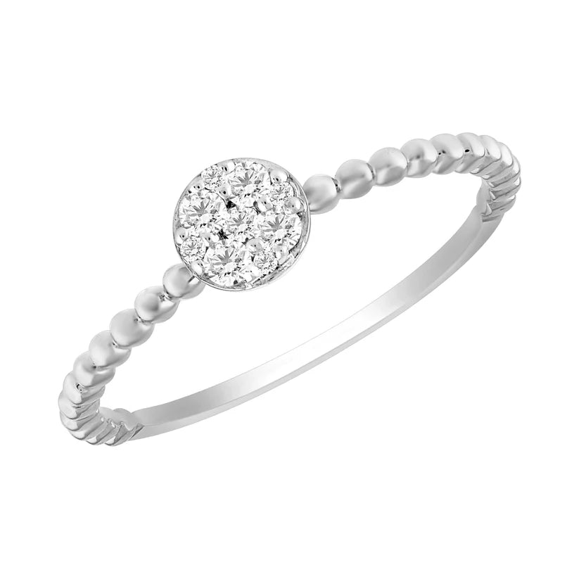14k Stackable Beaded Diamond Cluster Ring - 0.12ct