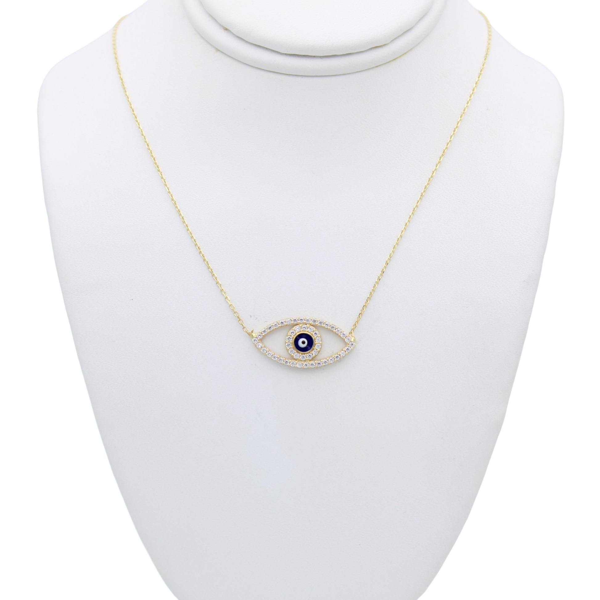 14k CZ Blue Enameled Eye Pendant