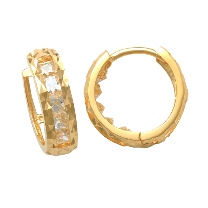 14k CZ Diamond-Cut Children's Huggie Earrings