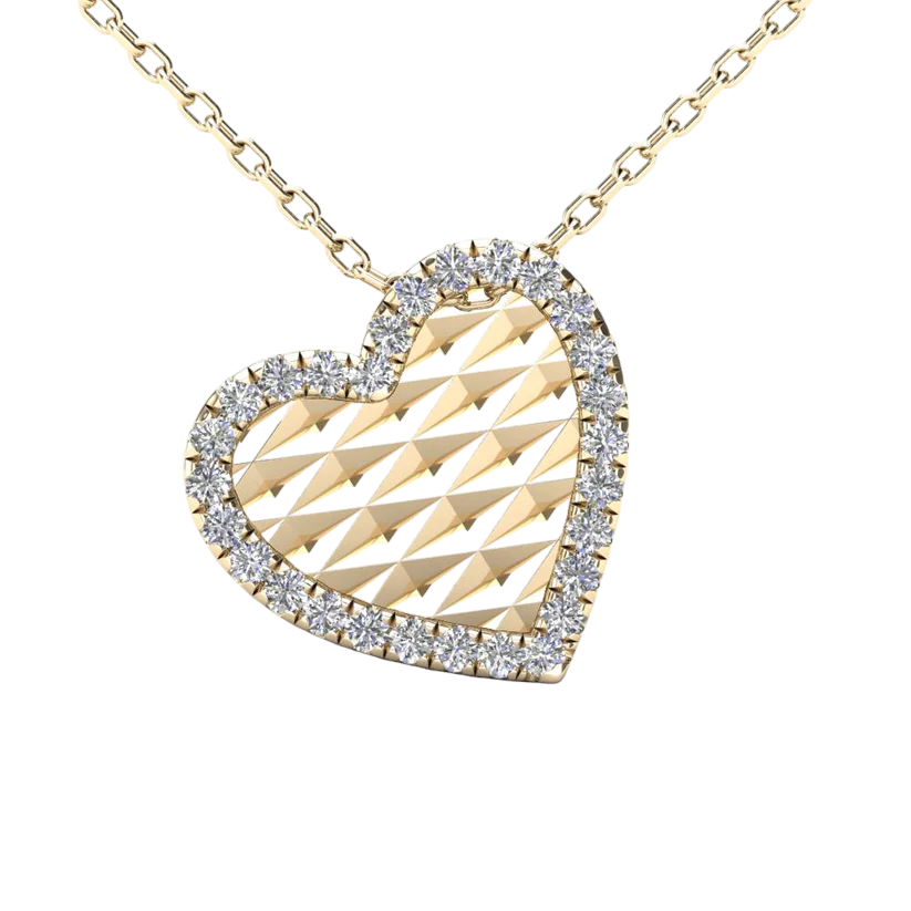 14k Gold Diamond Three-Dimensional Mini Heart Pendant - 0.07ct TDW