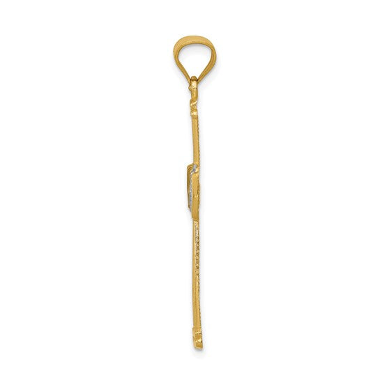 14k Two-Tone Gold Diamond-Cut Filigree Cross Pendant