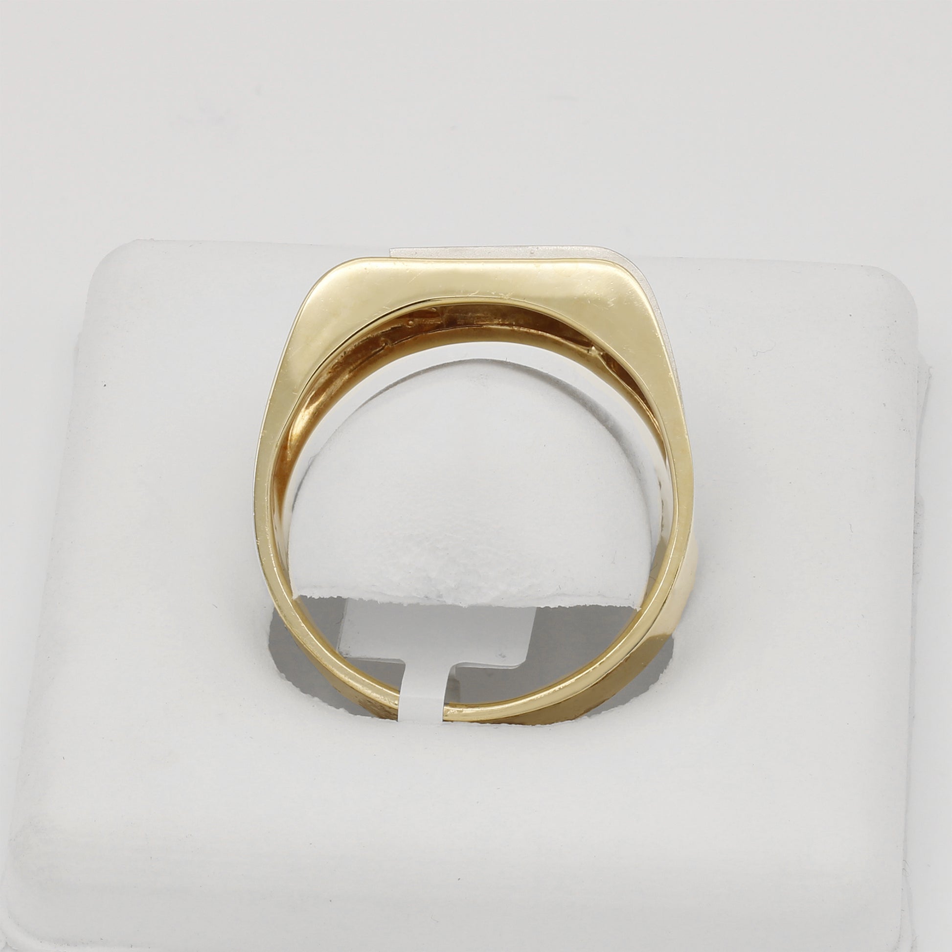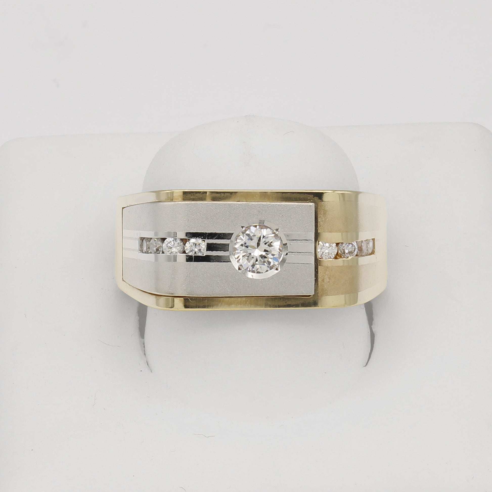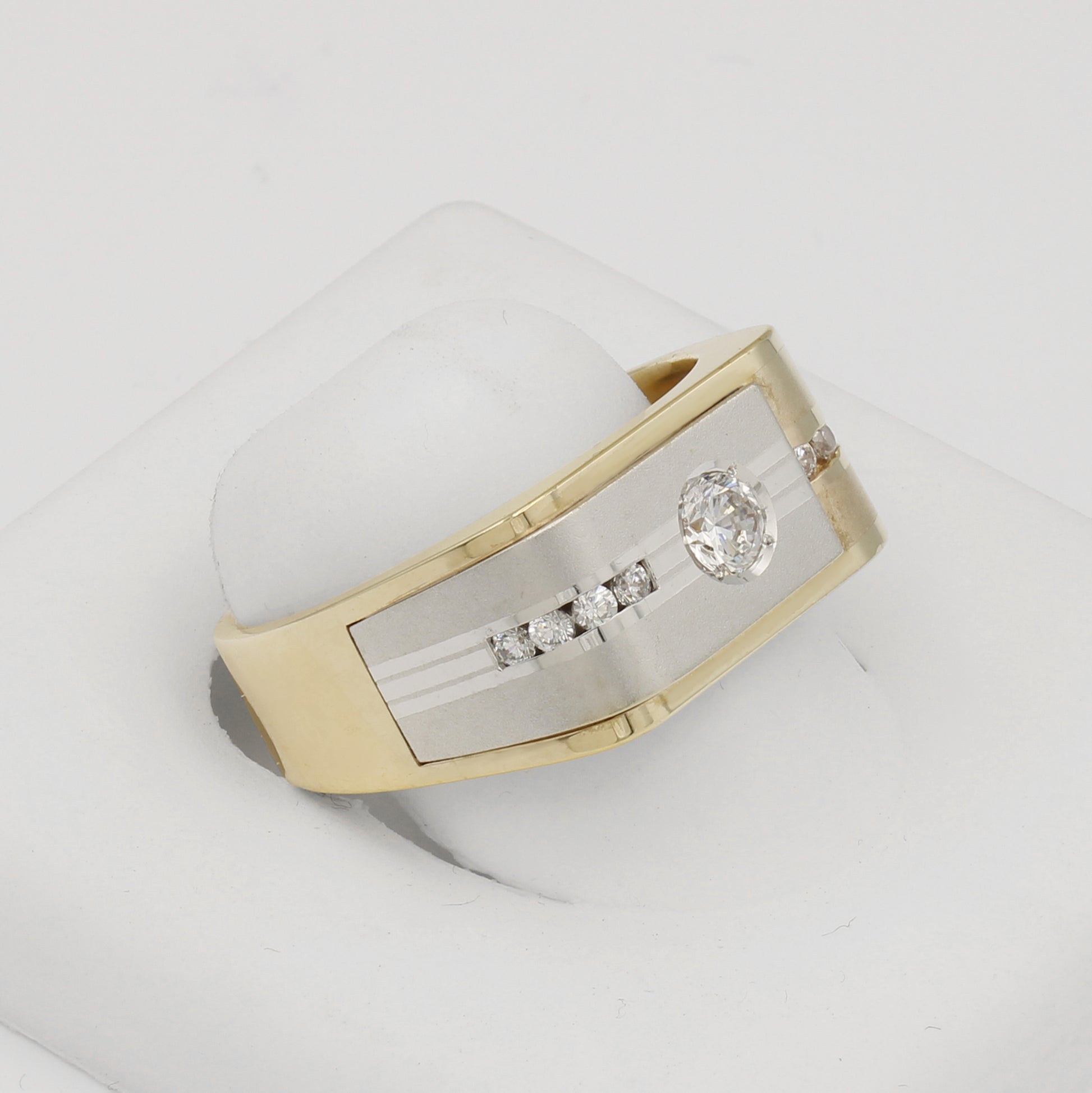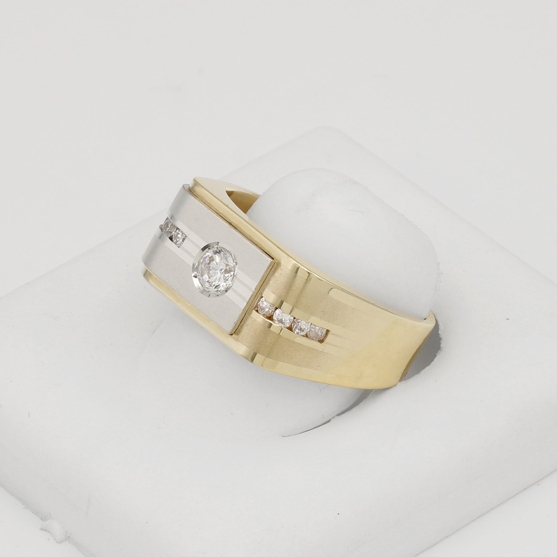14k Two-Tone Gold Men's Polished & Brushed Solitaire CZ Ring