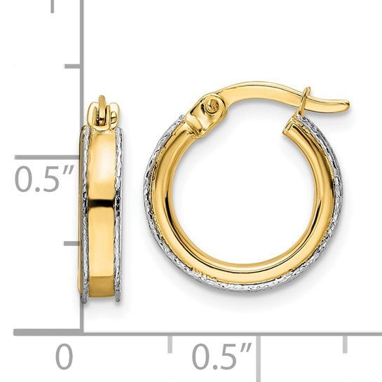 14k Two-Tone Gold Polished Diamond-Cut Edge Hoop Earrings - 14 mm