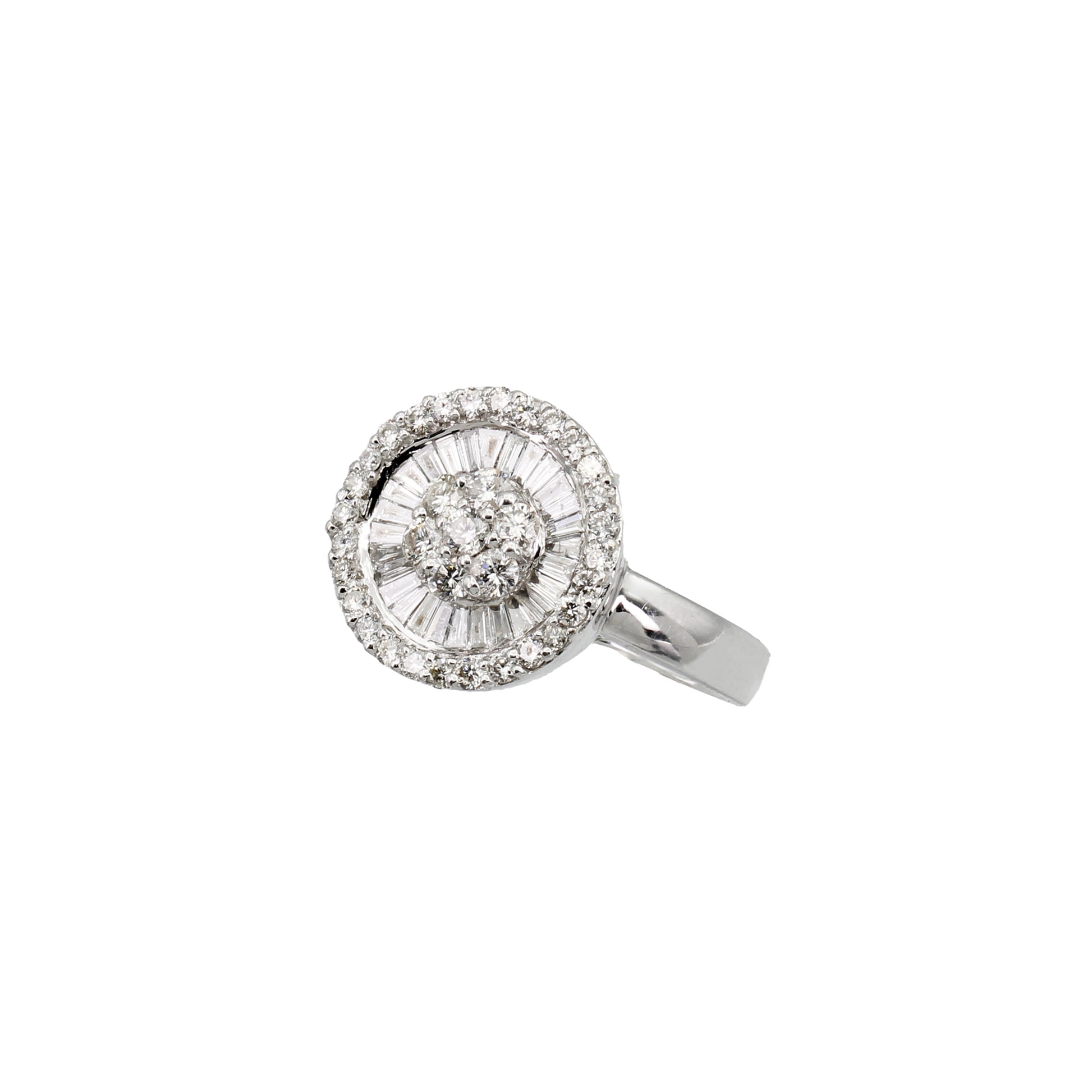 Baguette-Cut & Round-Cut Circle Diamond Ring