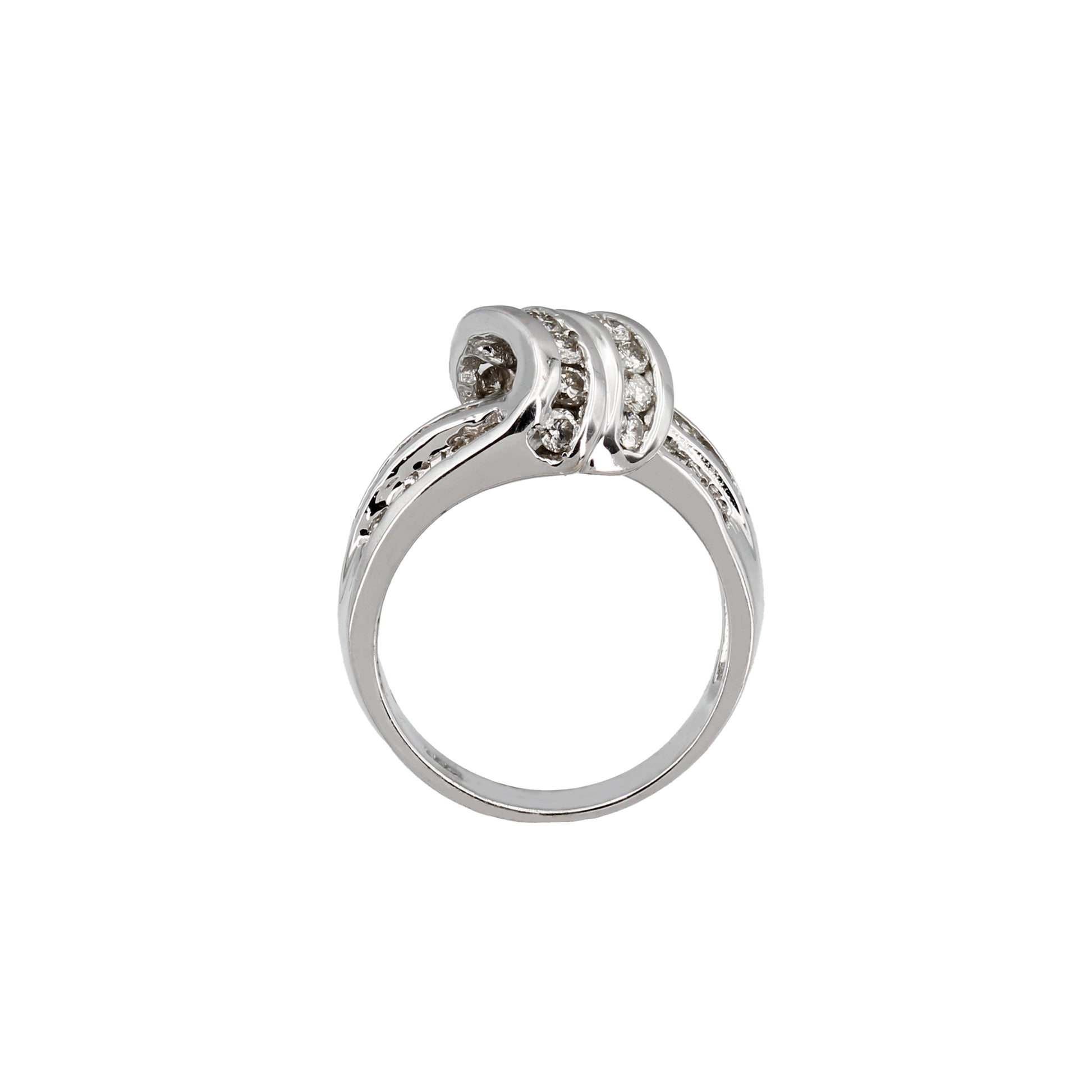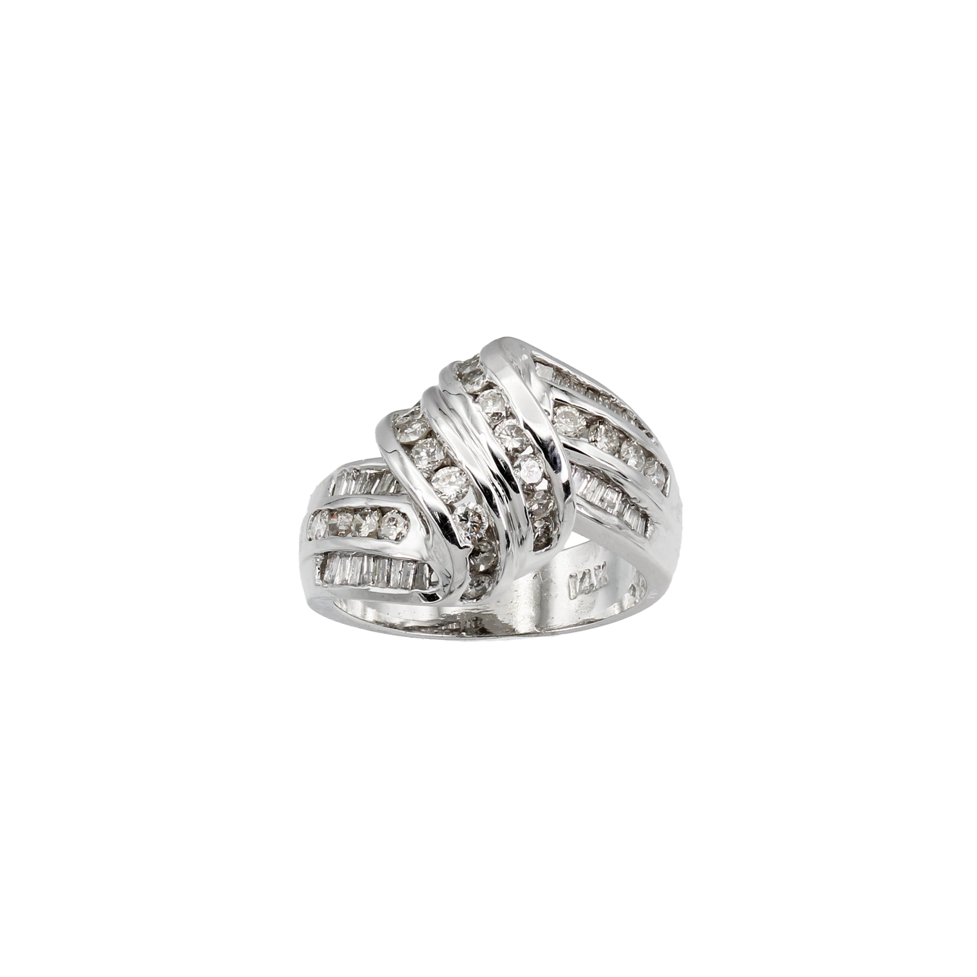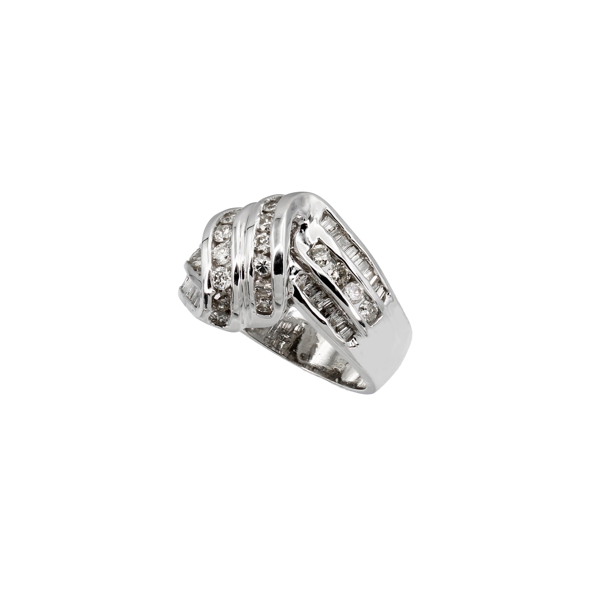 14k White Gold Baguette-Cut & Round-Cut Twisted Wavy Diamond Ring