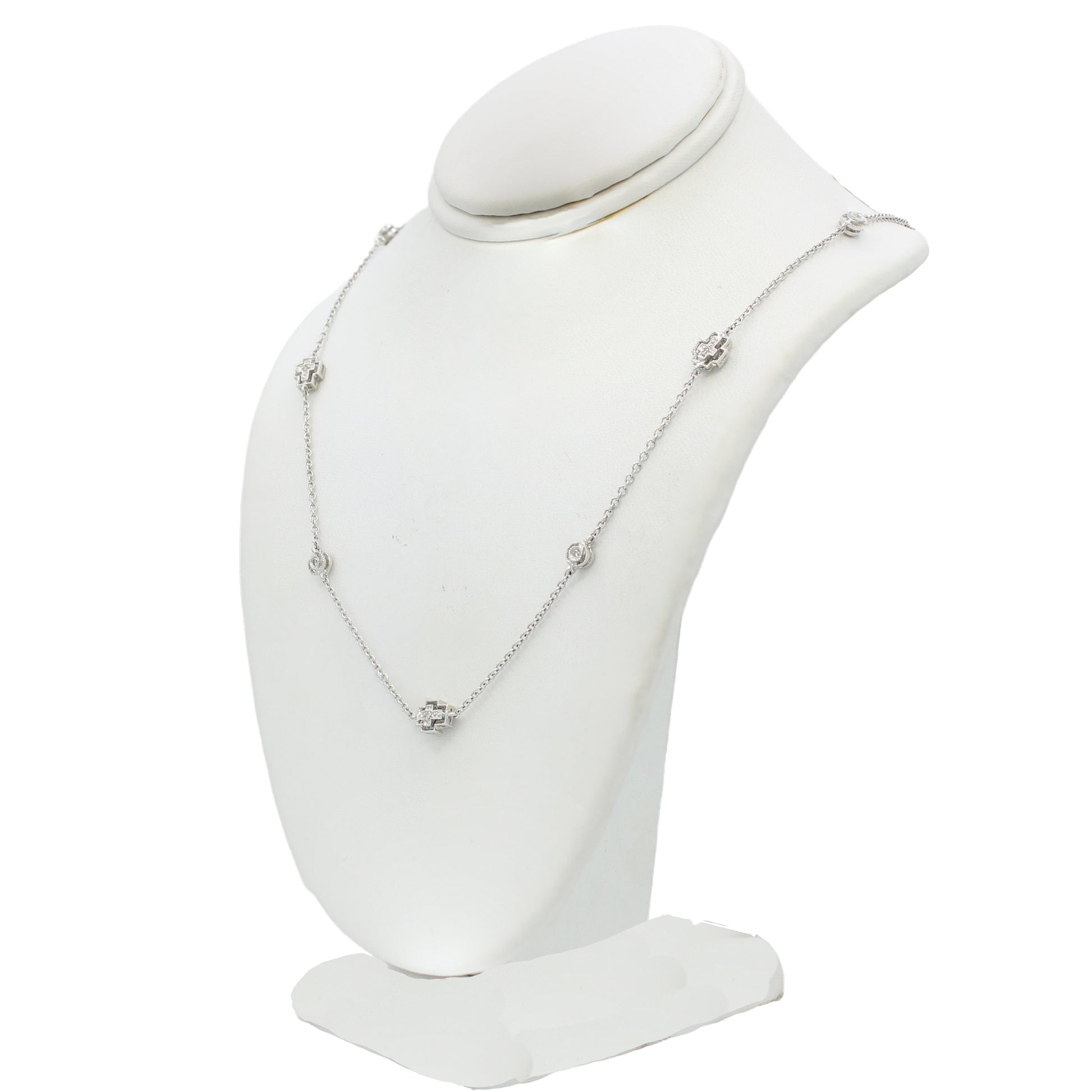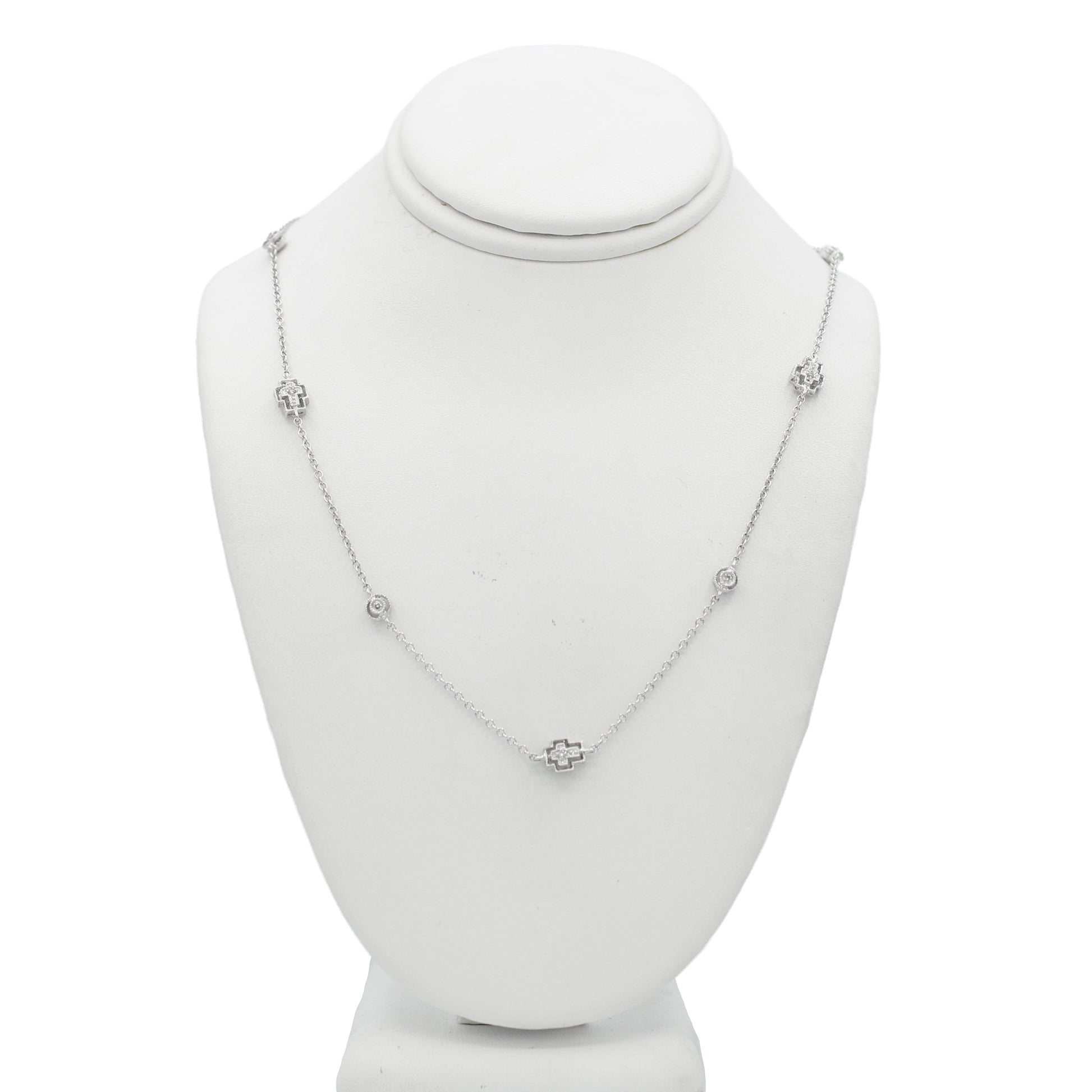 14k White Gold Diamond Cross & Bezel Necklace