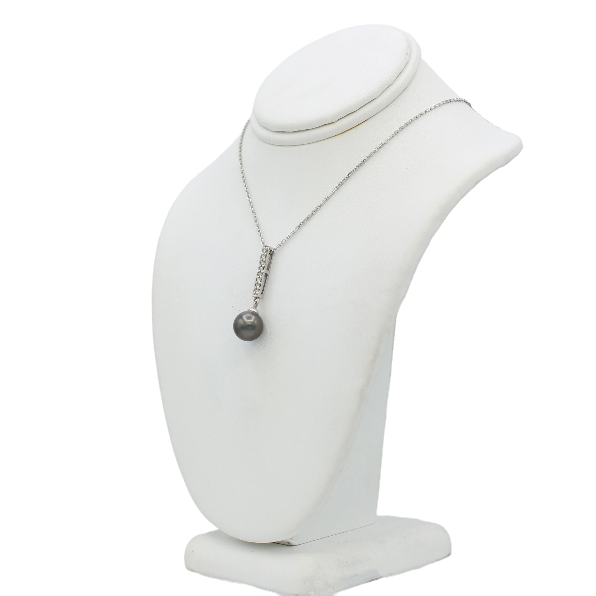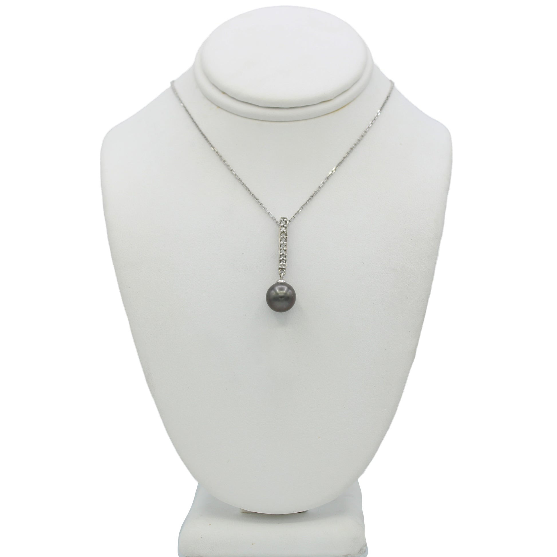 14k White Gold Diamond Cultured Tahitian Pearl Pendant