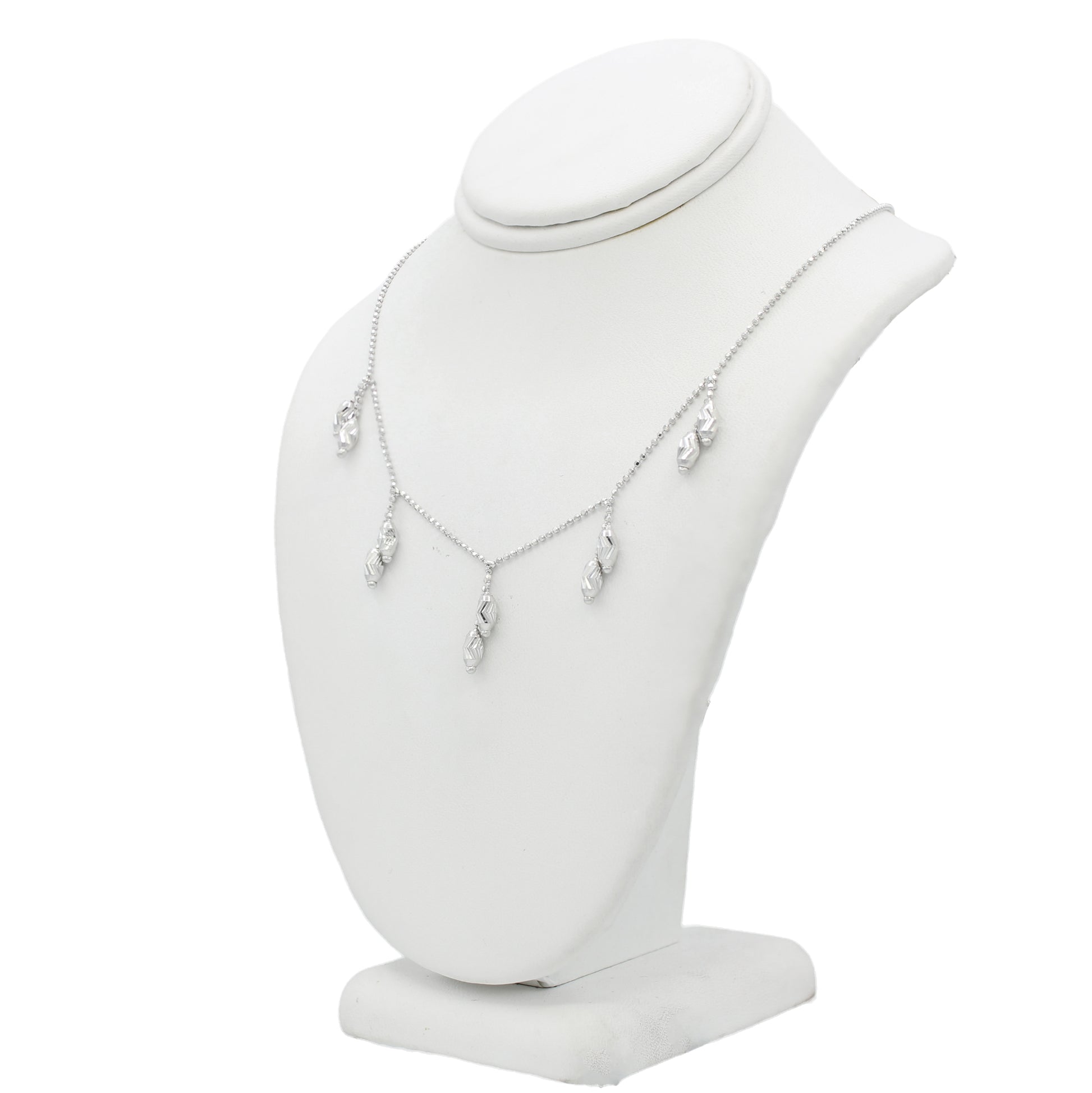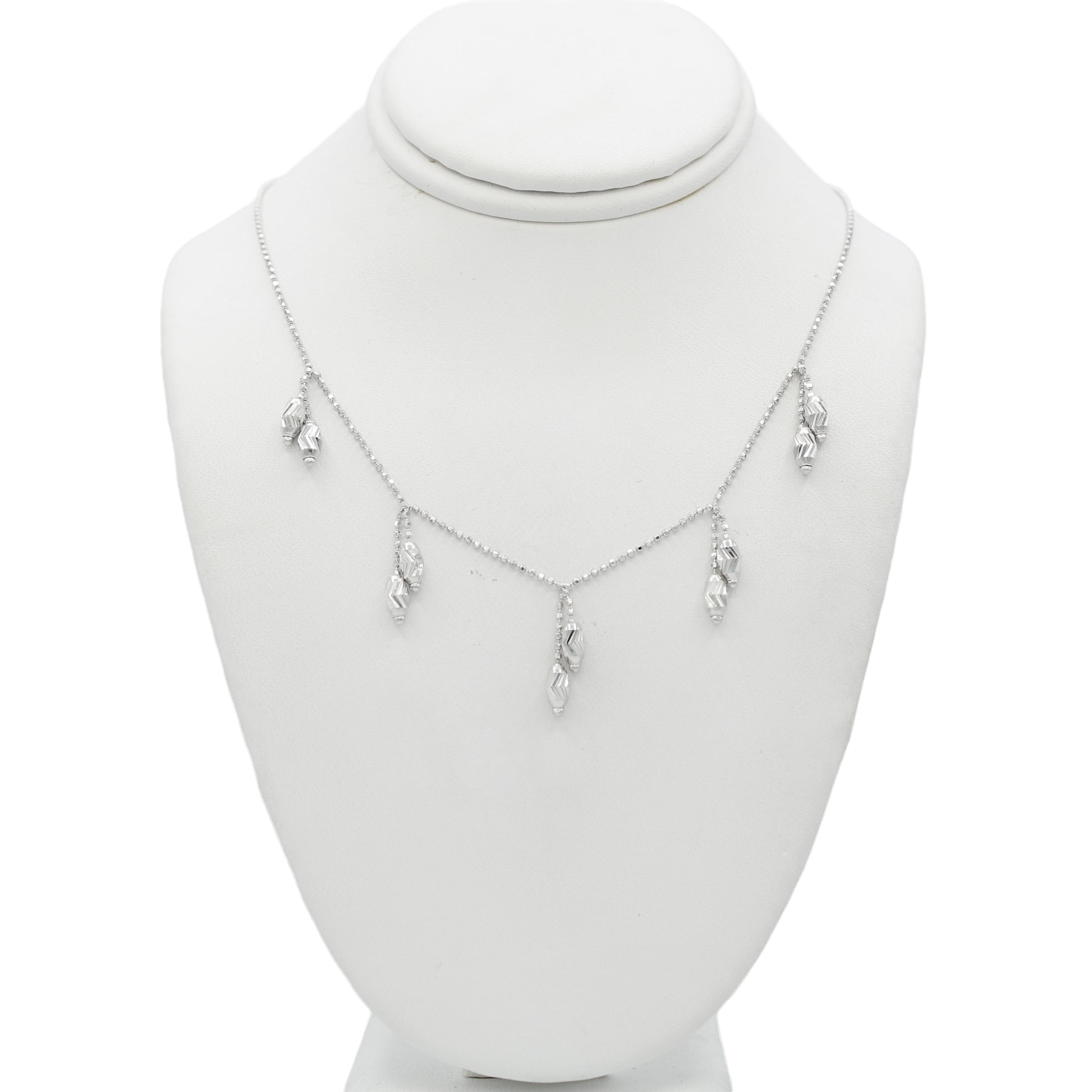 14k White Gold Diamond-Cut Beaded Drop Necklace