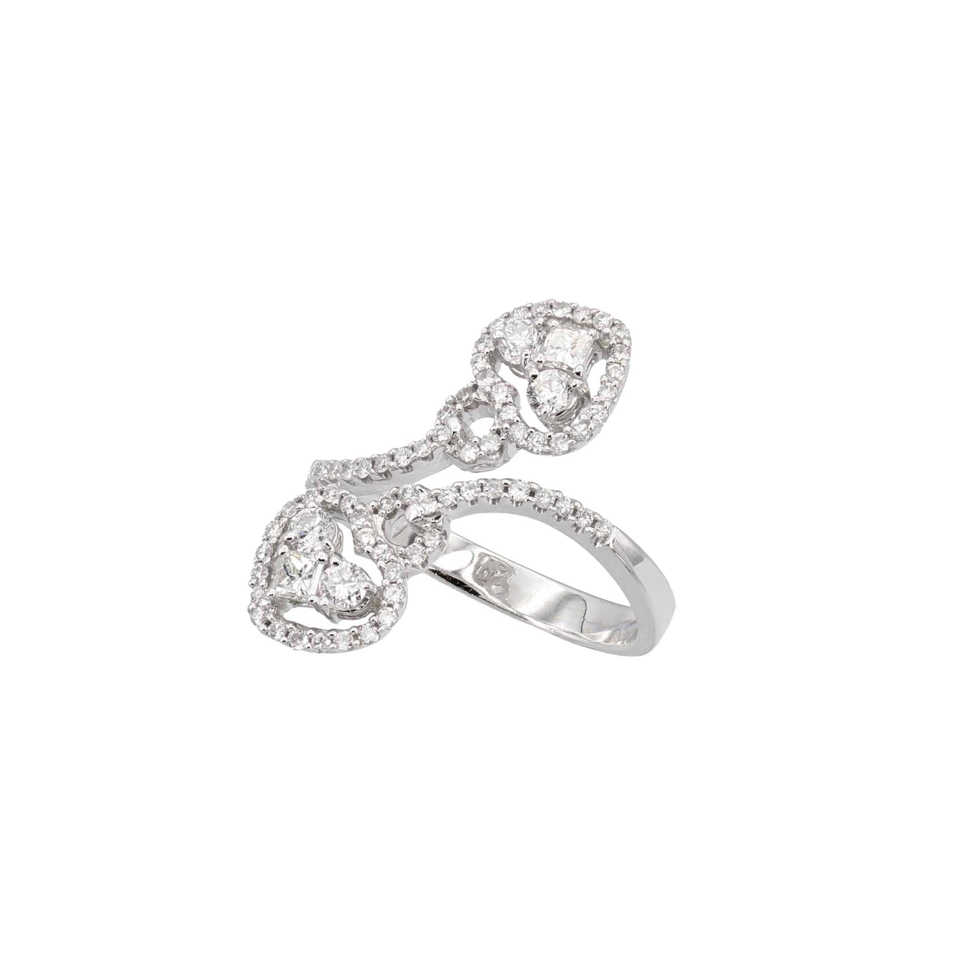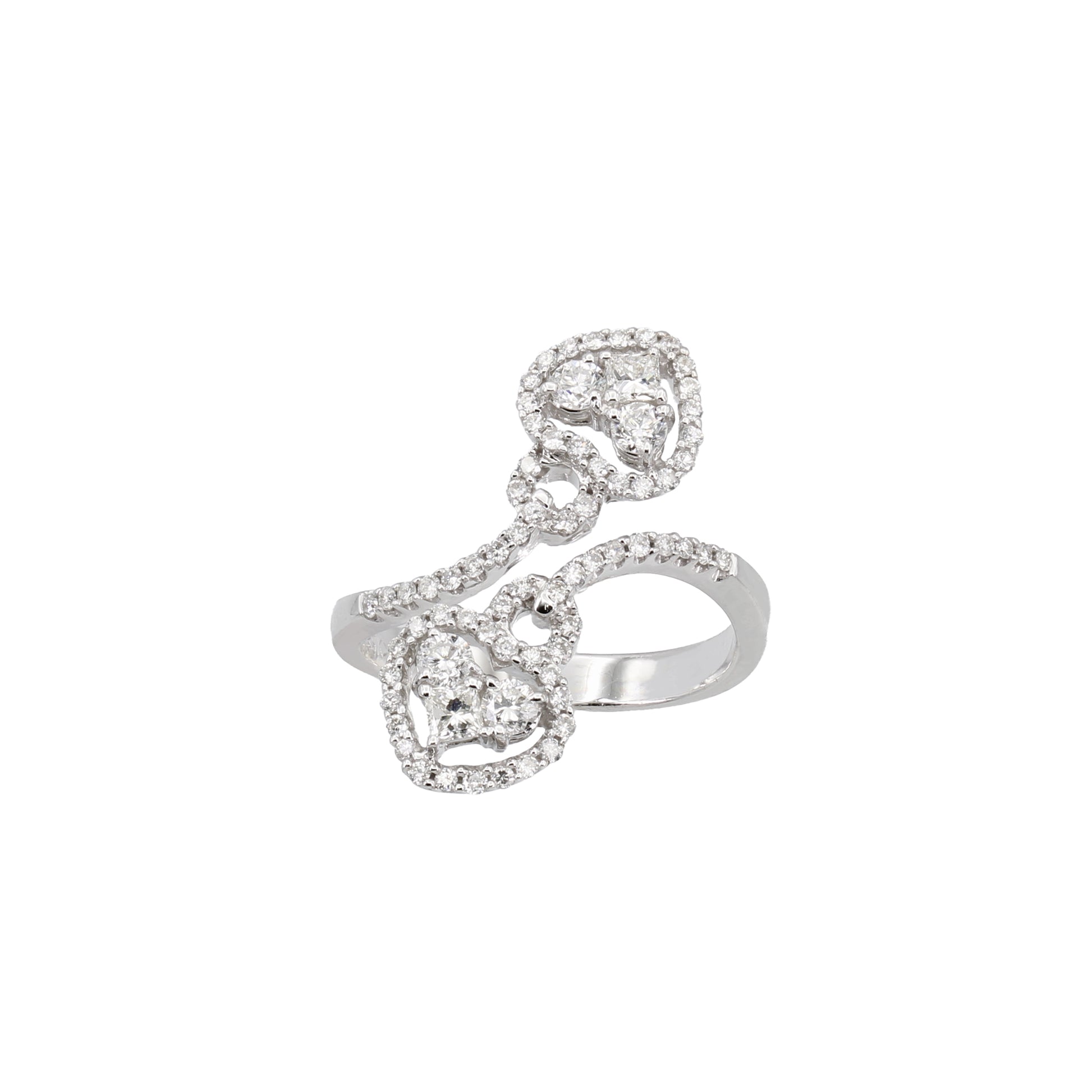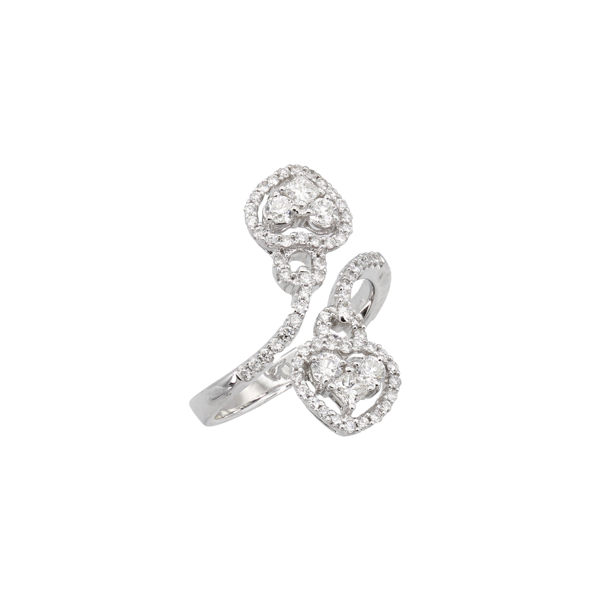 14k White Gold Fancy Round & Princess-Cut Diamond Heart Ring