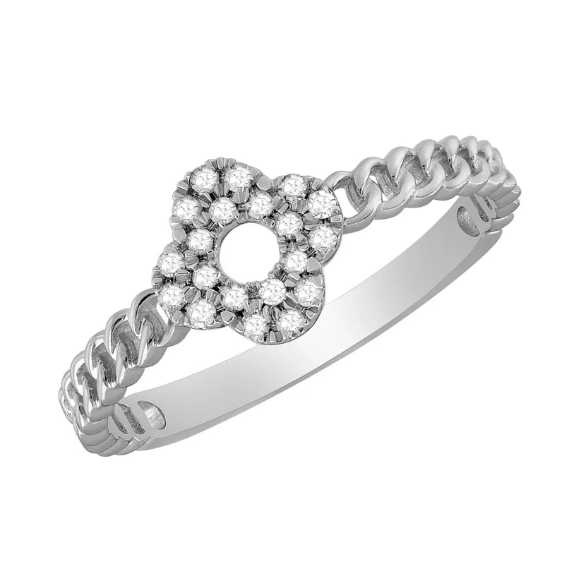 14k White Gold Micro-Pave Cuban Link Diamond Ring - 0.13ct
