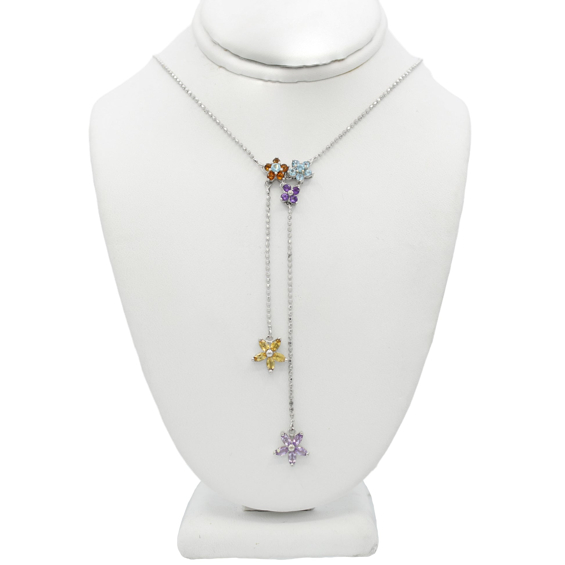 14k White Gold Multi-Colored Quartz Stone Flower Necklace