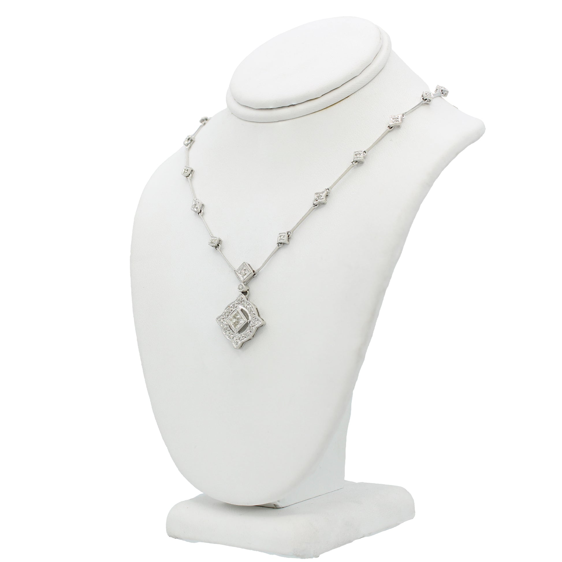 14k White Gold Princess-Cut Diamond Drop & Round Diamond Stationed Necklace