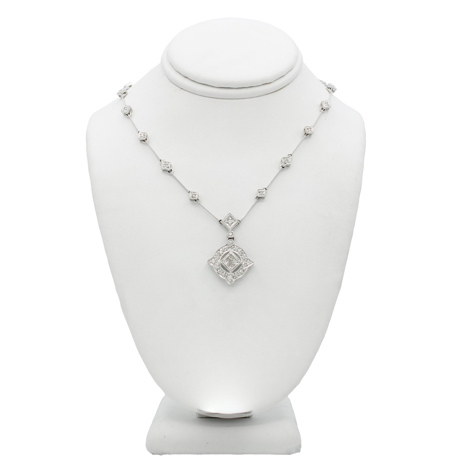 Princess-Cut Diamond Drop & Round Diamond Stationed Necklace