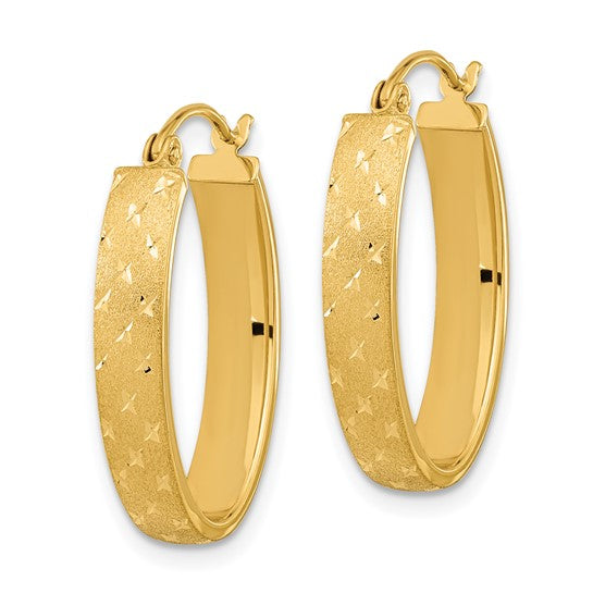 Polished Satin Diamond-Cut Oval Hoop Earrings
