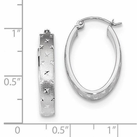 14k White Gold Polished Satin Diamond-Cut Oval Hoop Earrings - 22.5 x 15 mm