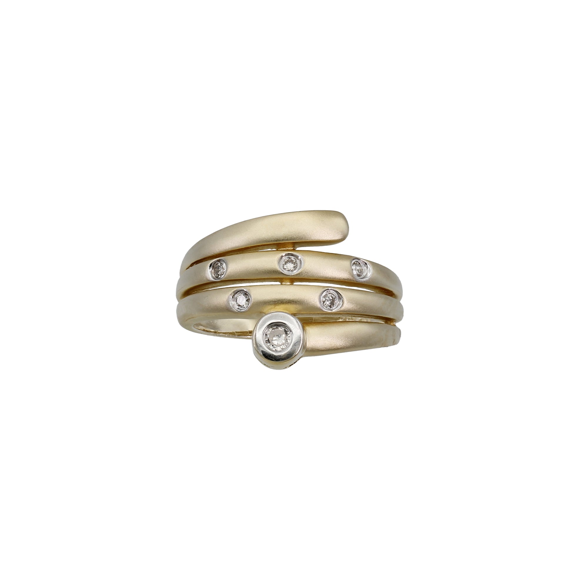 14k Yellow Gold Brushed Snake Style Diamond Ring