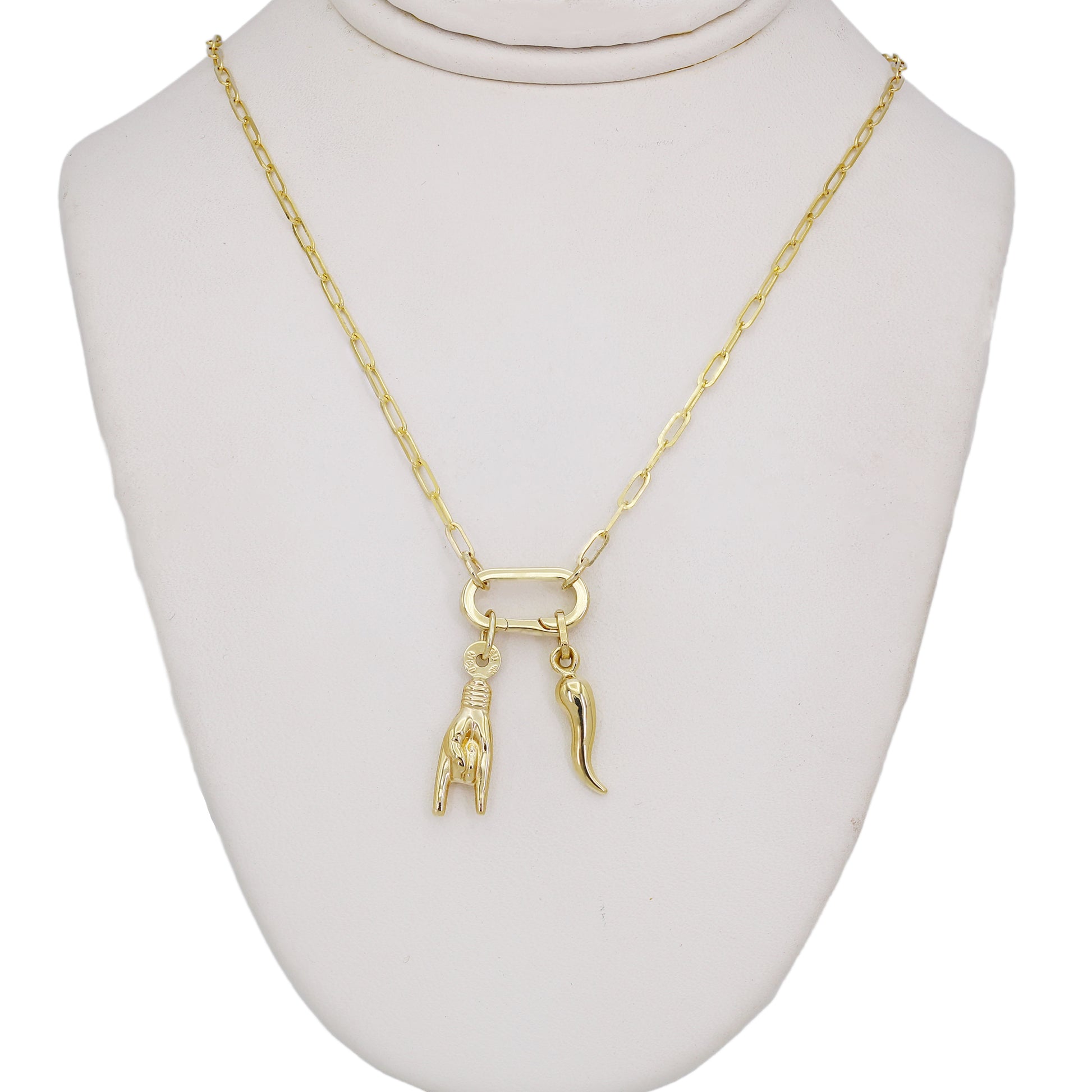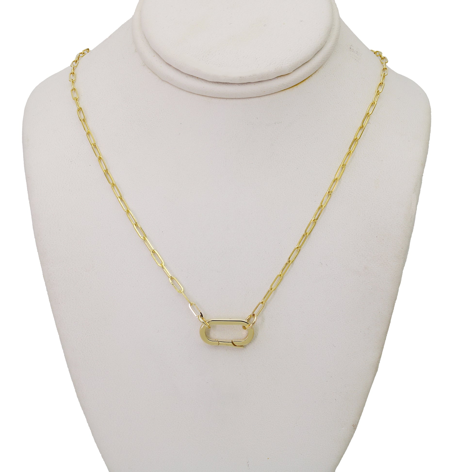 14k Yellow Gold Paperclip Necklace w/ Charm Holder - 1.60 mm