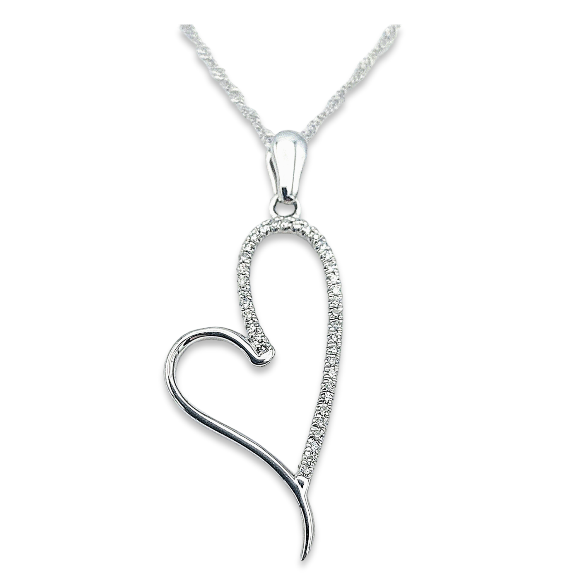 14k White Gold Diamond Heart Pendant - 0.11 ct. TDW