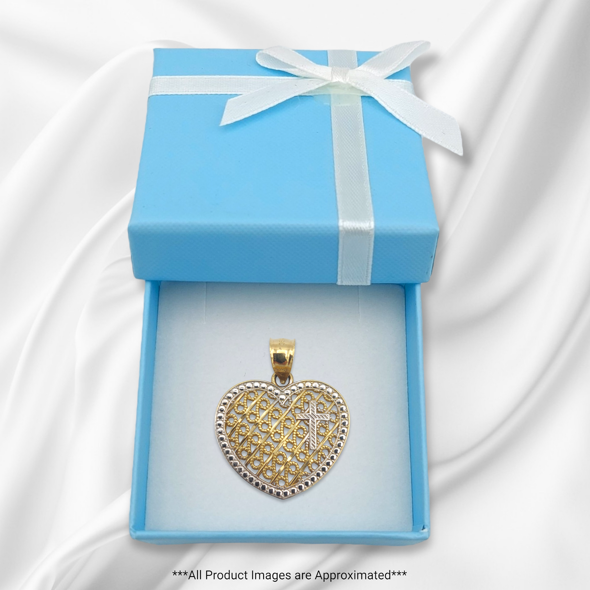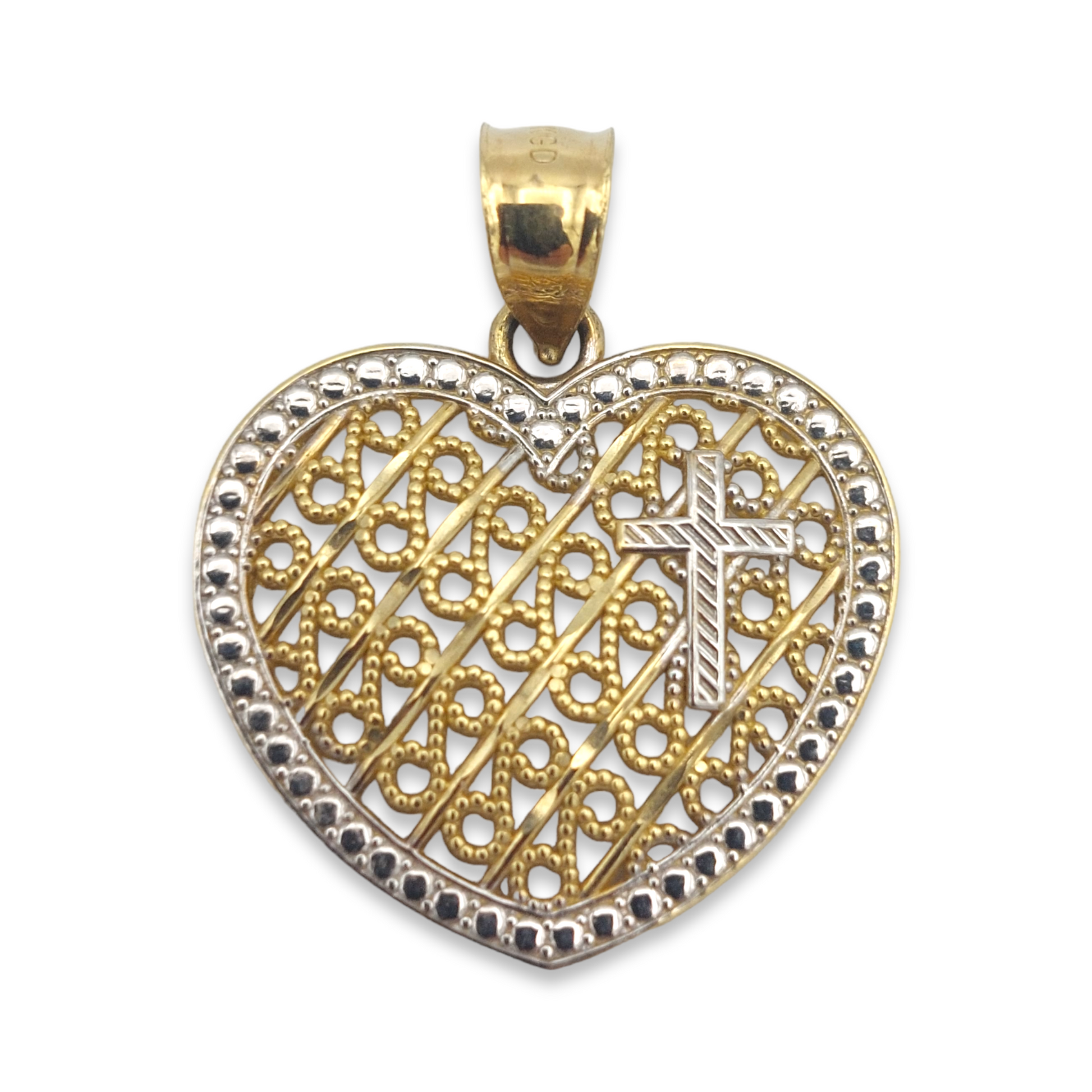 14k Two-Tone Filigree Heart w/ Cross Pendant