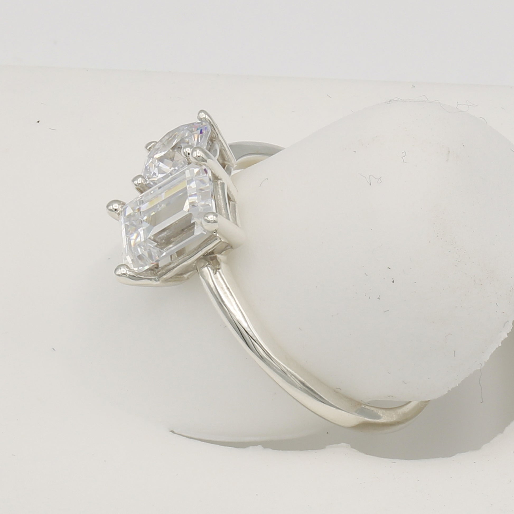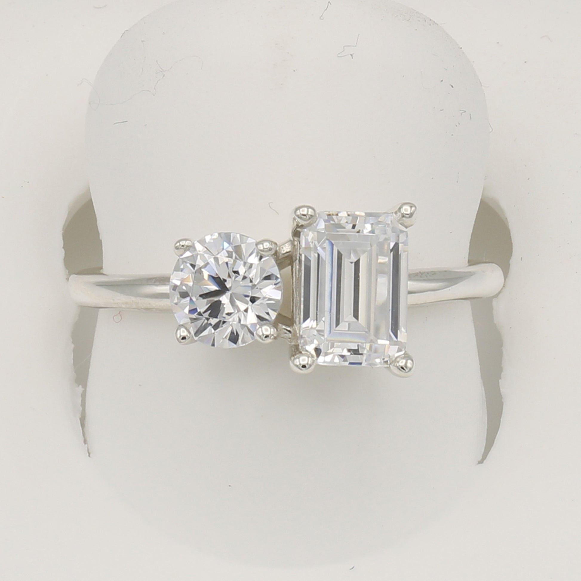 2-Stone Emerald-Cut & Round-Cut CZ Rings