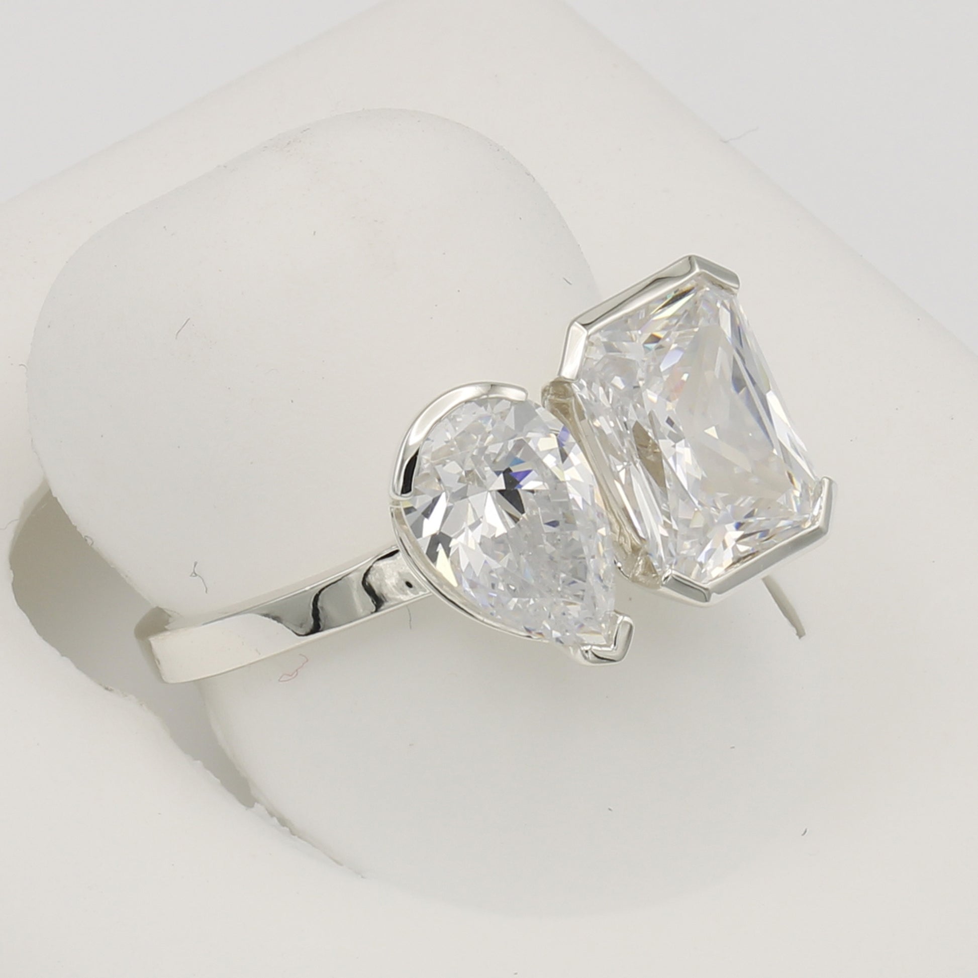 Sterling Silver 2-Stone Radiant Emerald-Cut & Pear-Cut CZ Rings