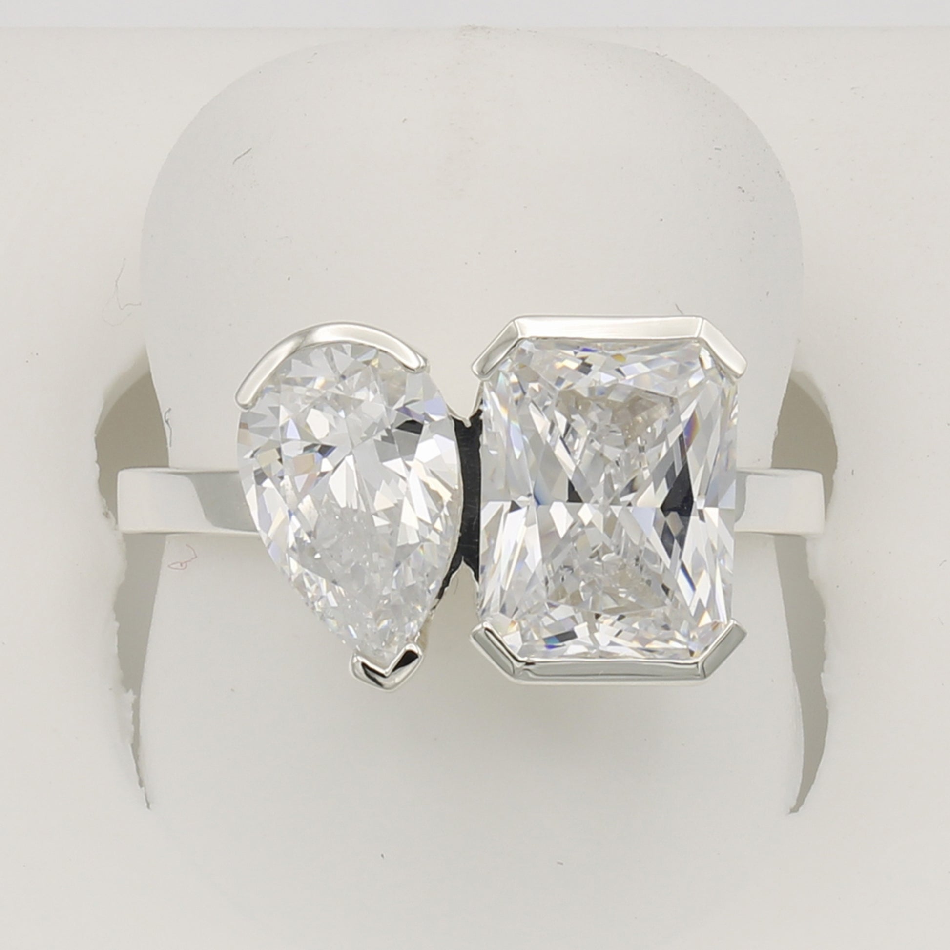 2-Stone Radiant Emerald-Cut & Pear-Cut CZ Rings