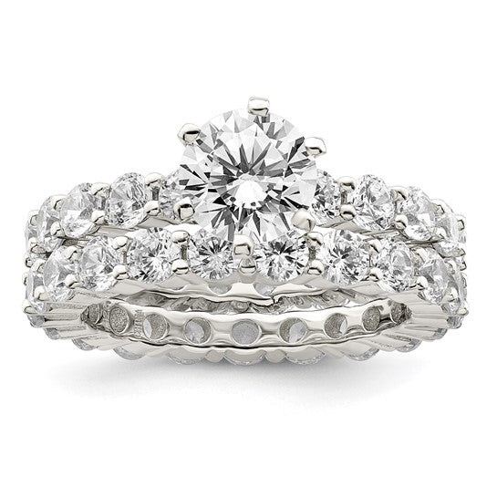 Sterling Silver CZ 2-Piece Eternity Wedding Set
