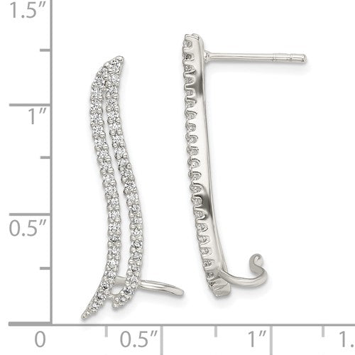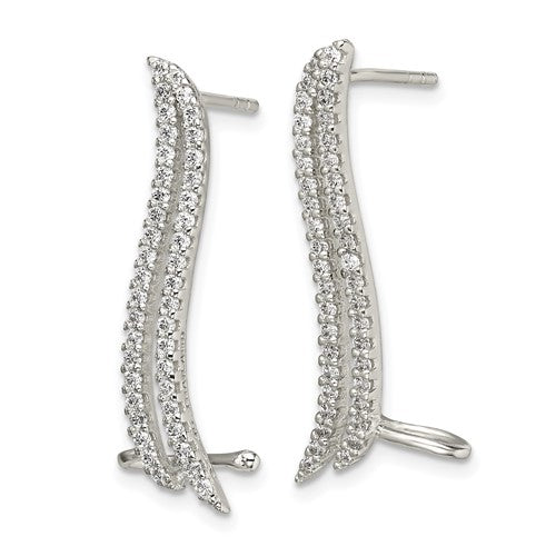 Sterling Silver CZ Cuff Ear Climber Earrings
