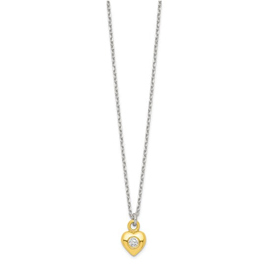 Sterling Silver & Gold-Plated CZ Heart Necklace & Post Earring Set