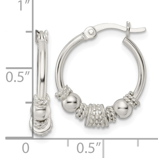 Sterling Silver Polished Beaded Circle Hoop Earrings - 17mm