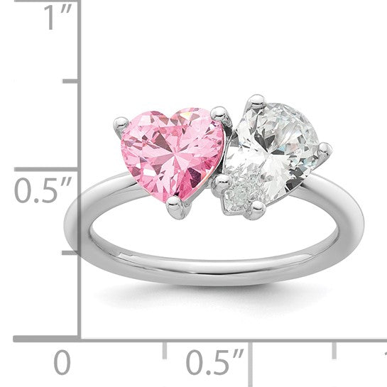 Sterling Silver Polished White Pear Shape & Pink Heart-Cut CZ Ring