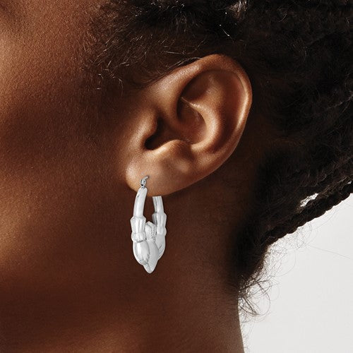 Sterling Silver Rhodium Plated Claddagh Semi-Solid Hoop Earrings