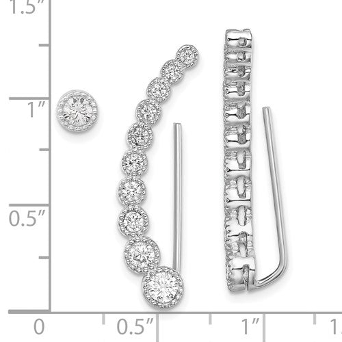 Sterling Silver Rhodium Plated CZ 1 Ear Climber & 1 Stud Earrings