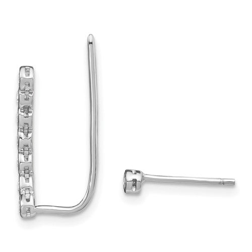 Sterling Silver Rhodium Plated CZ 1 Ear Climber & 1 Stud Earrings