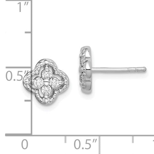 Sterling Silver Rhodium Plated CZ Post Earrings