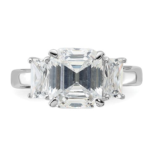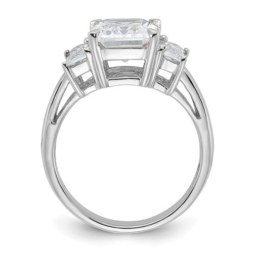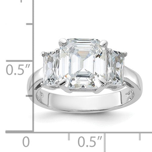 Sterling Silver Rhodium-plated Emerald-cut CZ 3-stone Ring